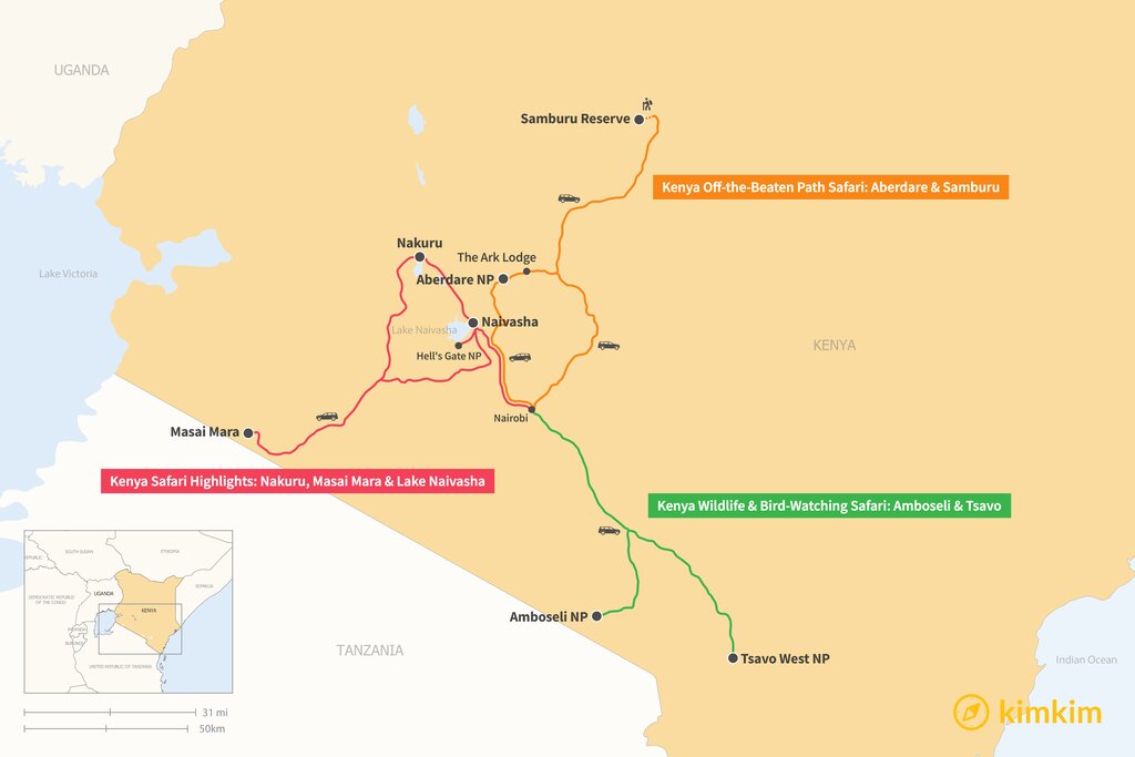 Map of 5 Days in Kenya – 3 Safari Itinerary Ideas