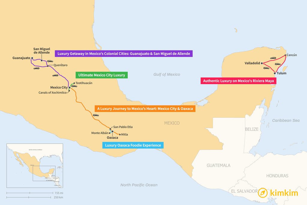 Map of 5 Days in Mexico – 5 Luxury Itinerary Ideas