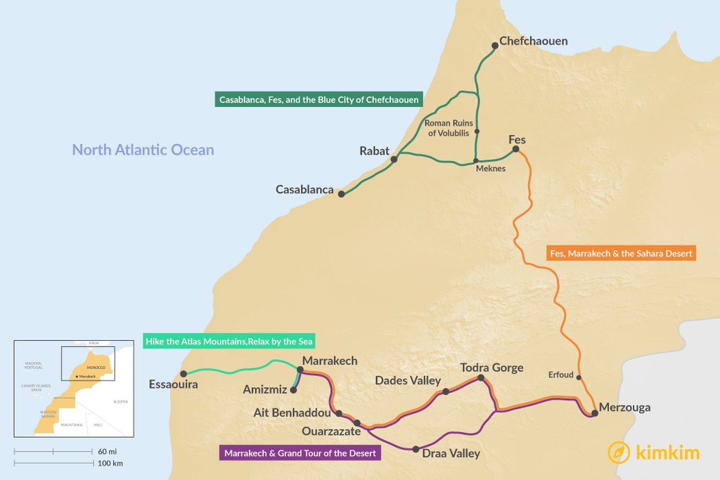 Map of 5 Days in Morocco – 4 Unique Itinerary Ideas