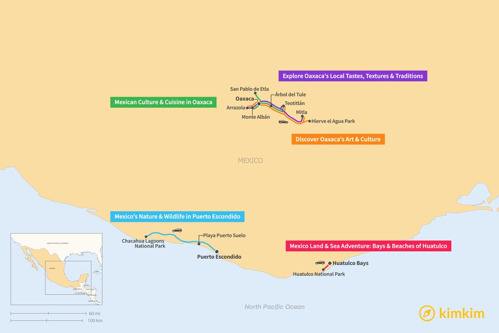Map of 5 Days in Oaxaca – 5 Unique Itinerary Ideas