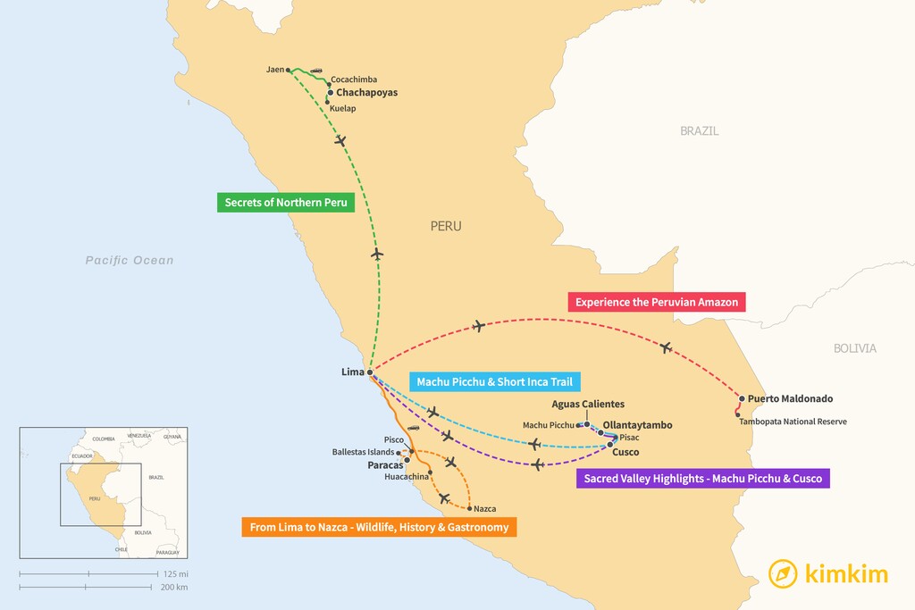 Map of 5 Days in Peru – 5 Unique Itinerary Ideas
