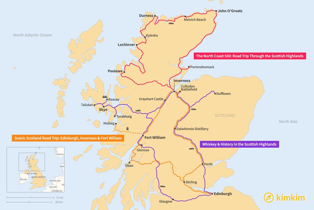 Map of 5 Days in Scotland – 3 Unique Itinerary Ideas