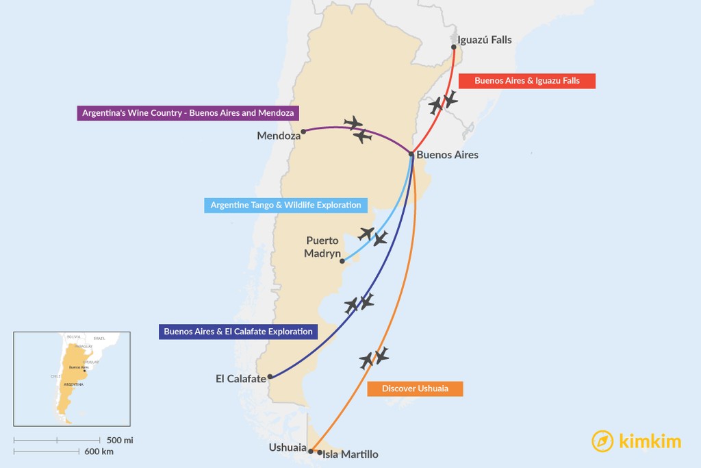Map of 6 Days in Argentina – 5 Unique Itinerary Ideas