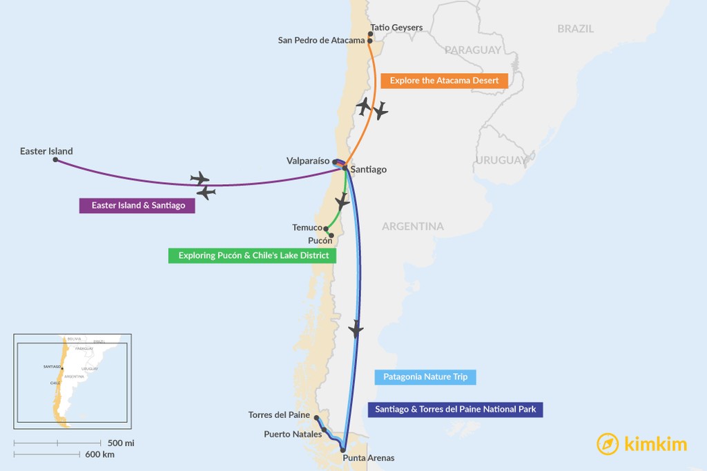 Map of 6 Days in Chile – 5 Unique Itinerary Ideas