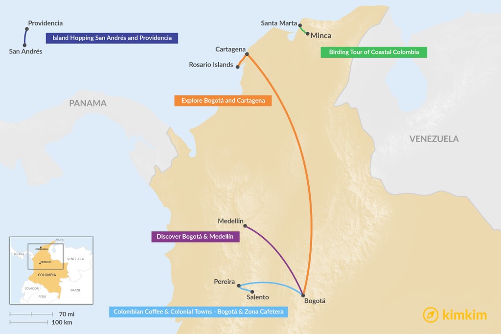 Map of 6 Days in Colombia – 5 Unique Itinerary Ideas
