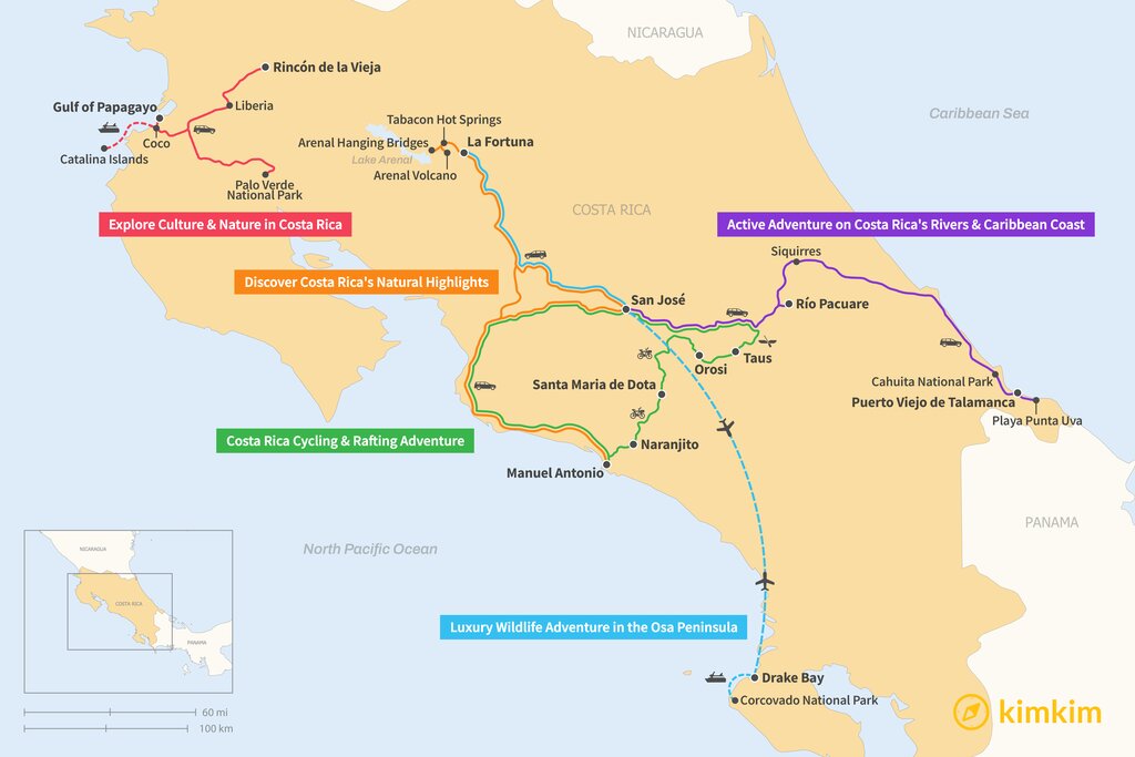 Map of 6 Days in Costa Rica – 5 Unique Itinerary Ideas