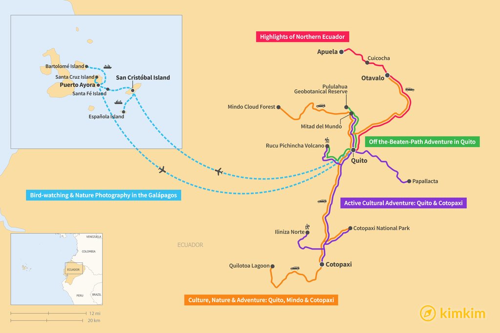 Map of 6 Days in Ecuador – 5 Unique Itinerary Ideas