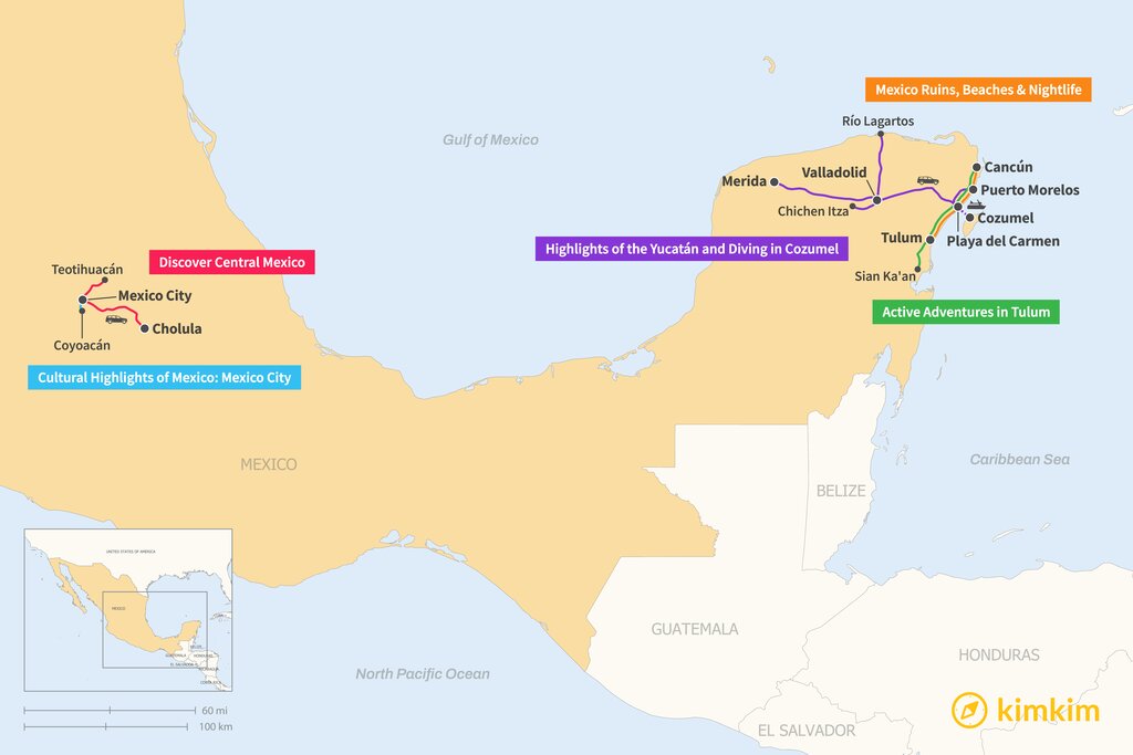 Map of 6 Days in Mexico – 5 Unique Itinerary Ideas