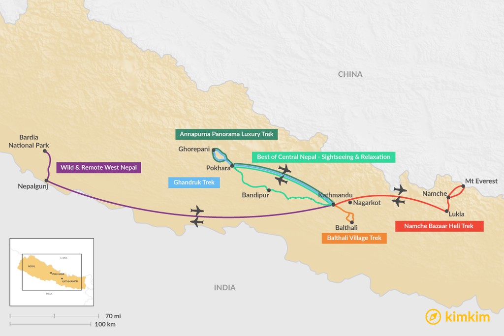 Map of 6 Days in Nepal – 6 Unique Itinerary Ideas