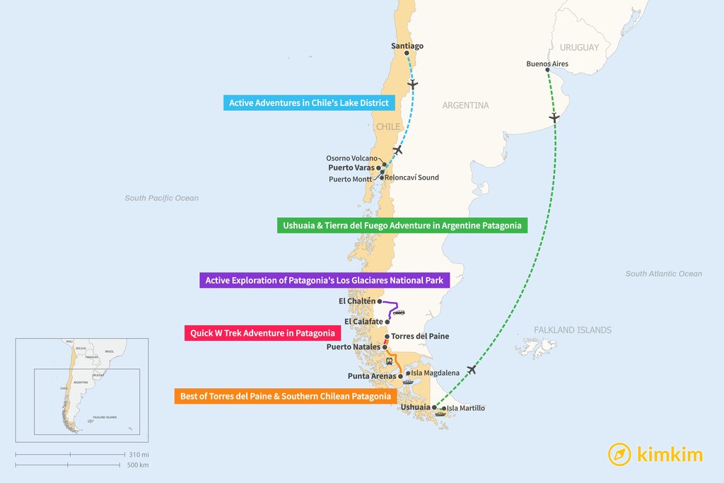 Map of 6 Days in Patagonia – 5 Unique Itinerary Ideas