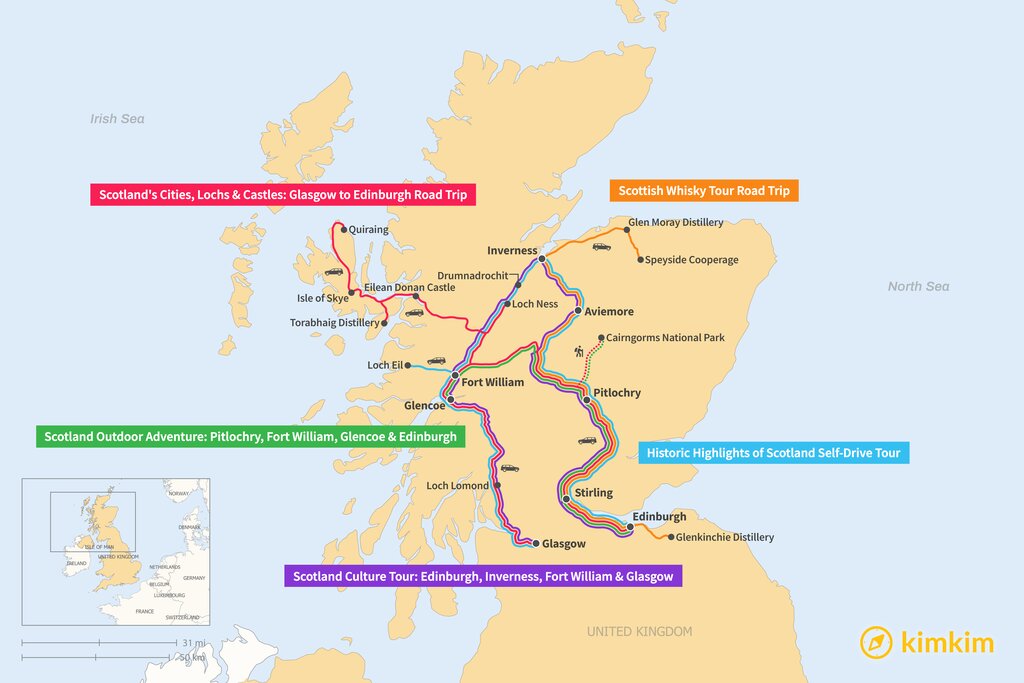 Map of 6 Days in Scotland – 5 Unique Itinerary Ideas