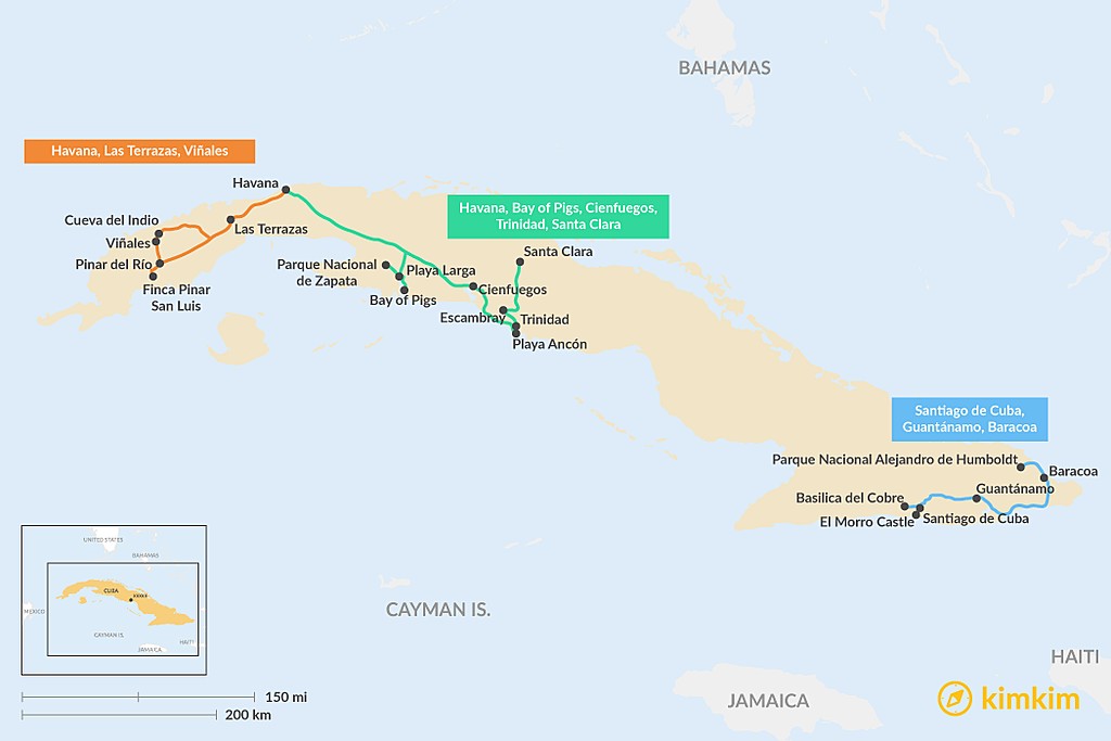 Map of 7 Days in Cuba – 3 Unique Itineraries