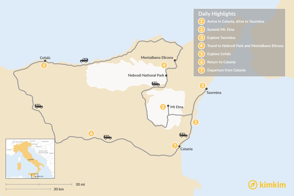 Map of 7 Days in Sicily: Mount Etna, the Ionian Coast, and Cefalú