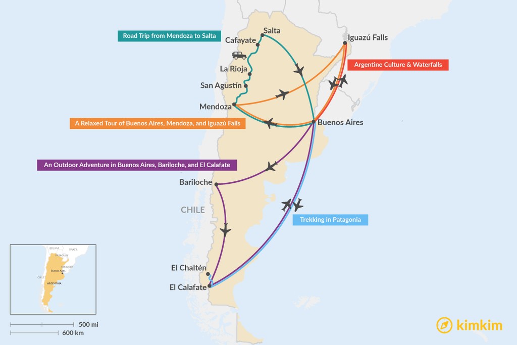 Map of 8 Days in Argentina – 5 Unique Itinerary Ideas