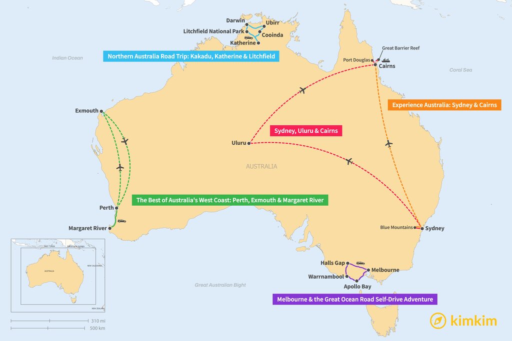 Map of 8 Days in Australia – 5 Unique Itinerary Ideas