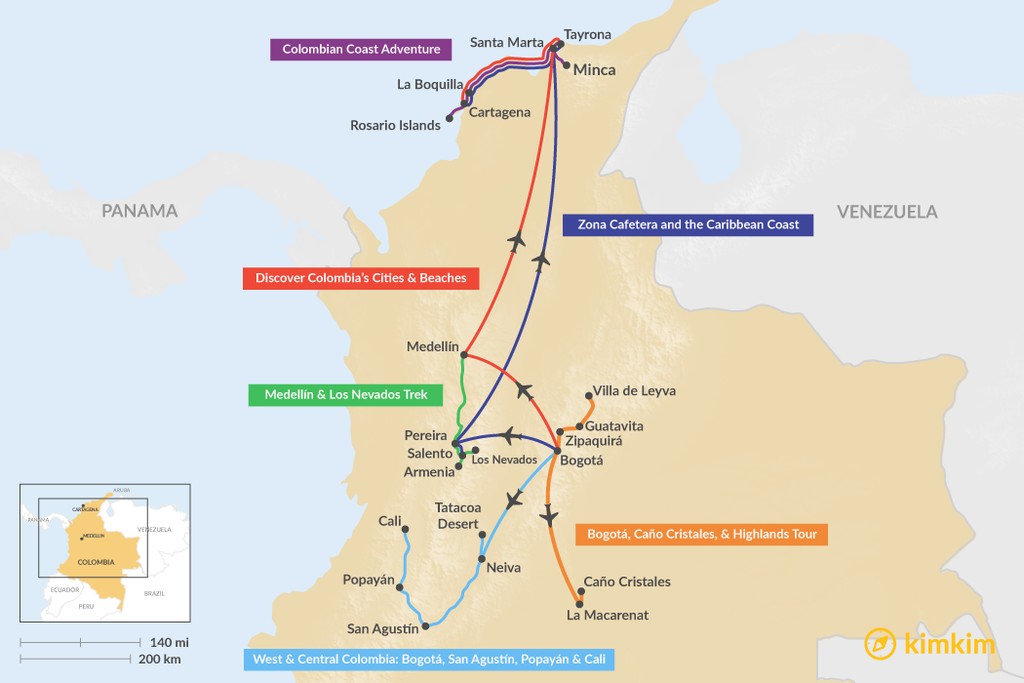 Map of 8 Days in Colombia – 6 Unique Itinerary Ideas