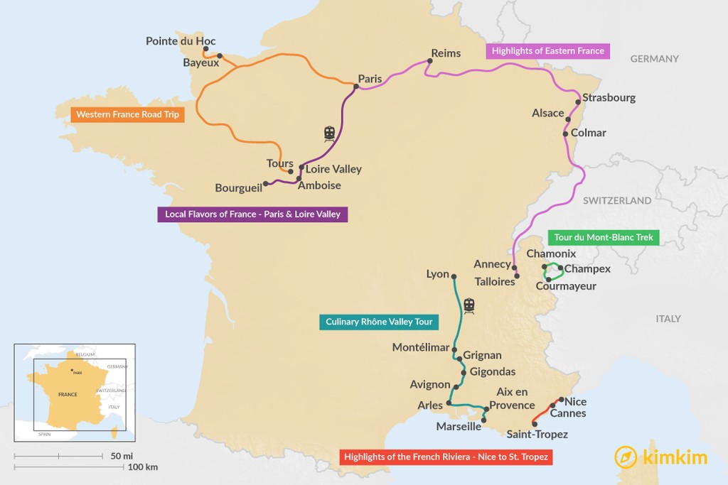 Map of 8 Days in France – 6 Unique Itinerary Ideas