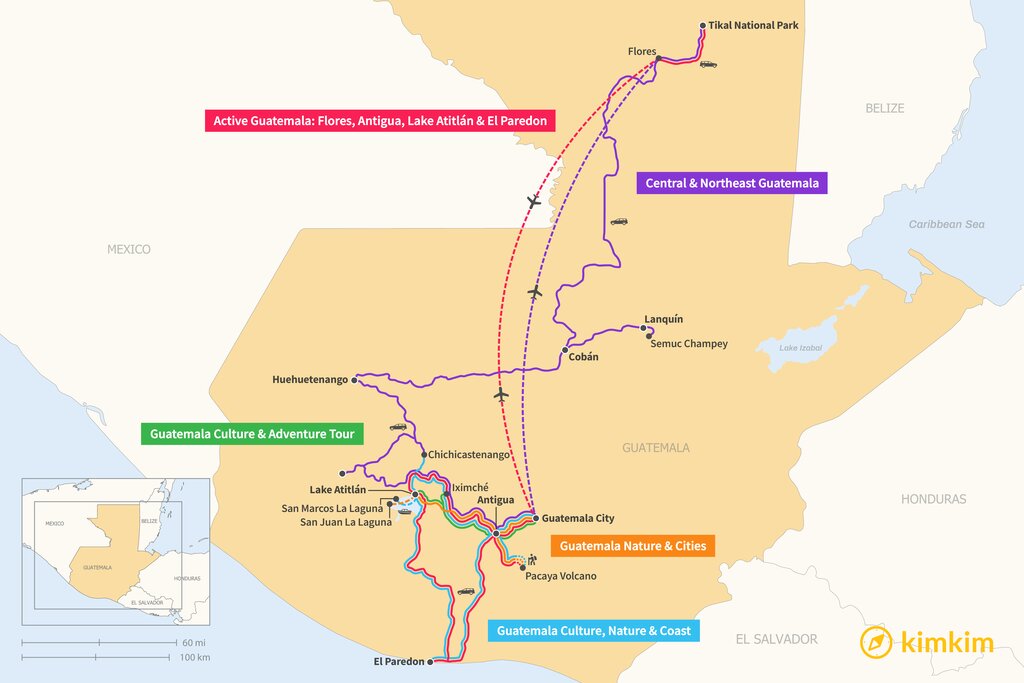 Map of 8 Days in Guatemala – 5 Unique Itinerary Ideas