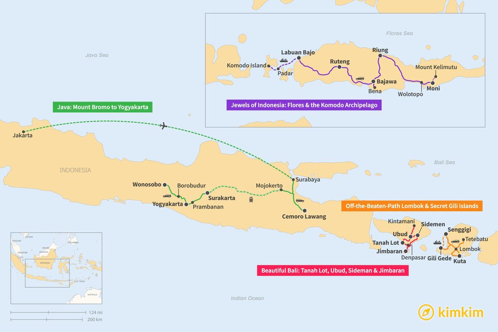 Map of 8 Days in Indonesia – 4 Unique Itinerary Ideas