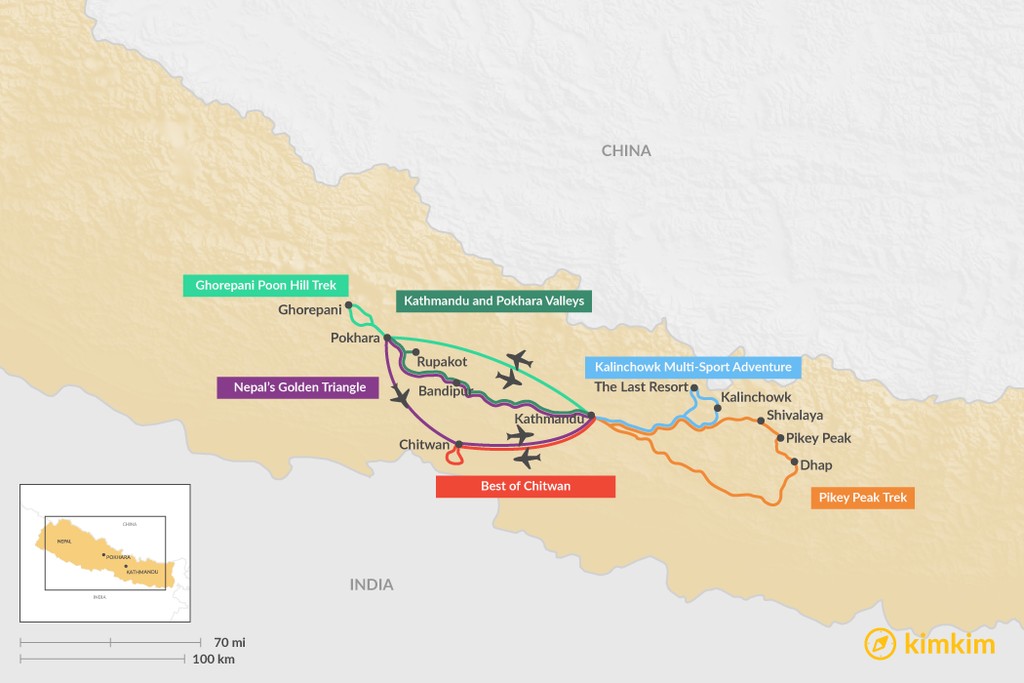 Map of 8 Days in Nepal – 6 Unique Itinerary Ideas
