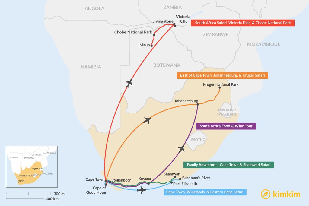 Map of 8 Days in South Africa – 5 Unique Itinerary Ideas