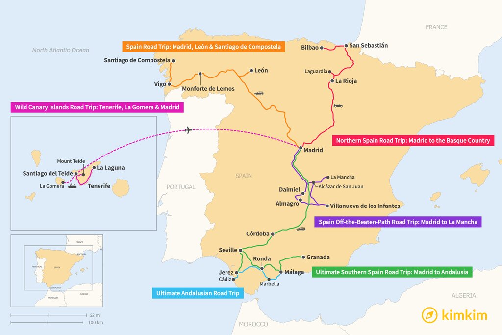 Map of 8 Days in Spain – 6 Unique Road Trip Itineraries