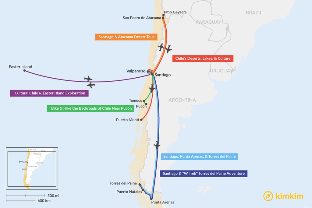 Map of 9 Days in Chile – 6 Unique Itinerary Ideas
