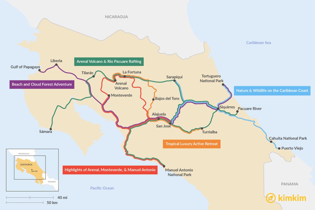 Map of 9 Days in Costa Rica – 5 Unique Itinerary Ideas