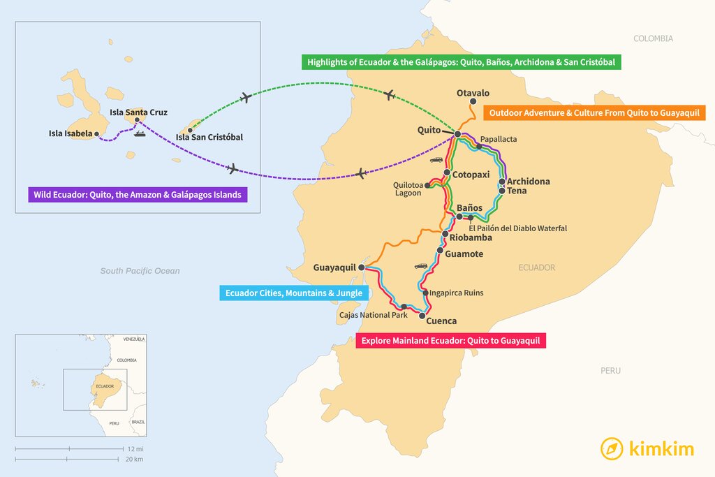 Map of 9 Days in Ecuador – 5 Unique Itinerary Ideas