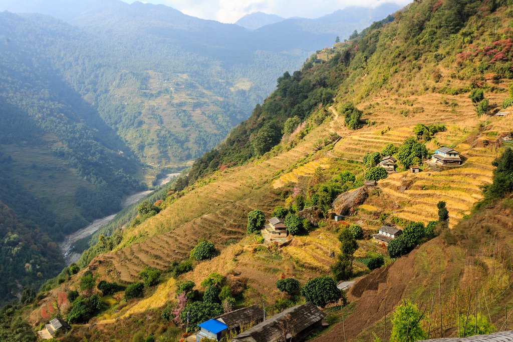 Wake up before dawn on day five for an incredible hike to the top of Poon Hill in time to watch the sunrise over the valley, illuminating the peaks of the Annapurnas. After breakfast back in town, you’ll trek to the small village of Tadapani, where you’ll spend the night. On day six, it’s onto Ghandruk, the “Switzerland of Nepal;” this terraced village is home to the Gurung, a Nepalese ethnic tribe.