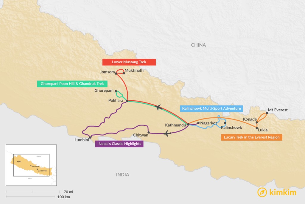 Map of 9 Days in Nepal – 5 Unique Itinerary Ideas