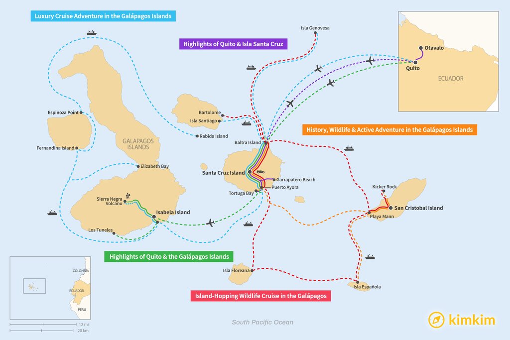 Map of 9 Days in the Galápagos Islands – 5 Unique Itinerary Ideas