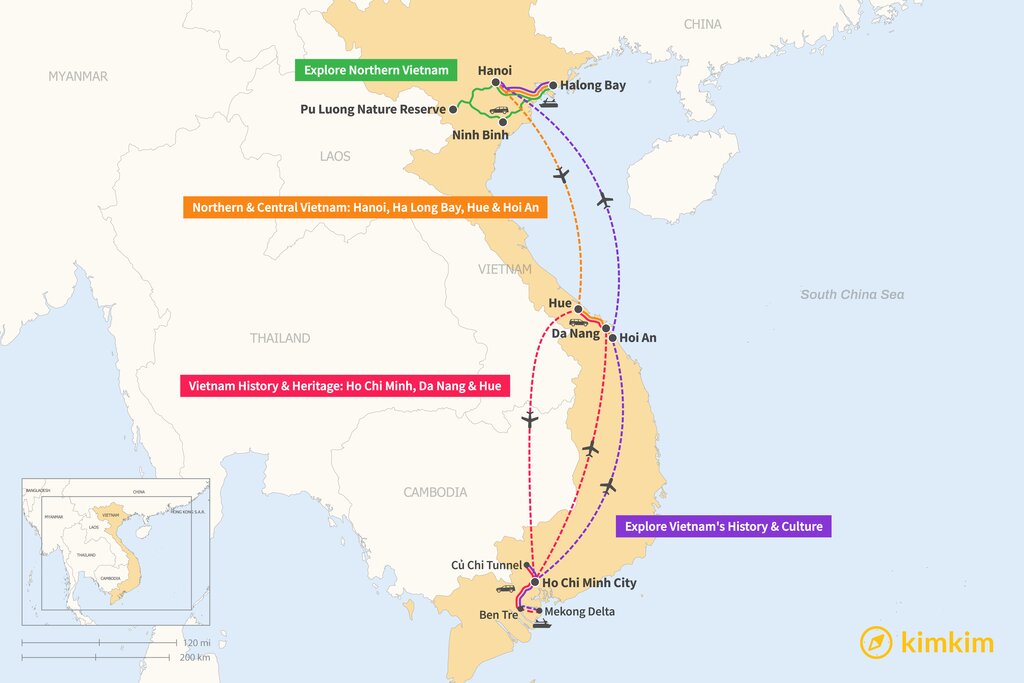 Map of 9 Days in Vietnam – 4 Unique Itinerary Ideas