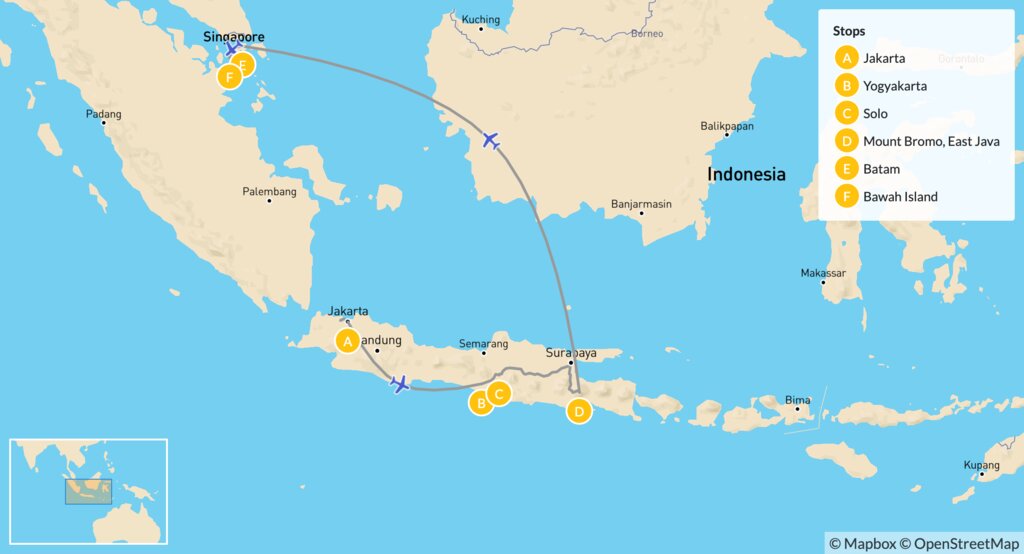 Map of A Romantic Indonesian Journey from Java to Bawah – 11 Days