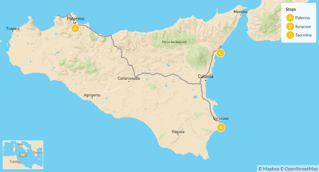 Map of A Sicilian Food Adventure: Palermo, Syracuse & Taormina – 7 Days
