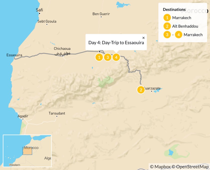 Map of A Taste of Morocco: Marrakech, Aït Benhaddou, & Essaouira – 5 Days