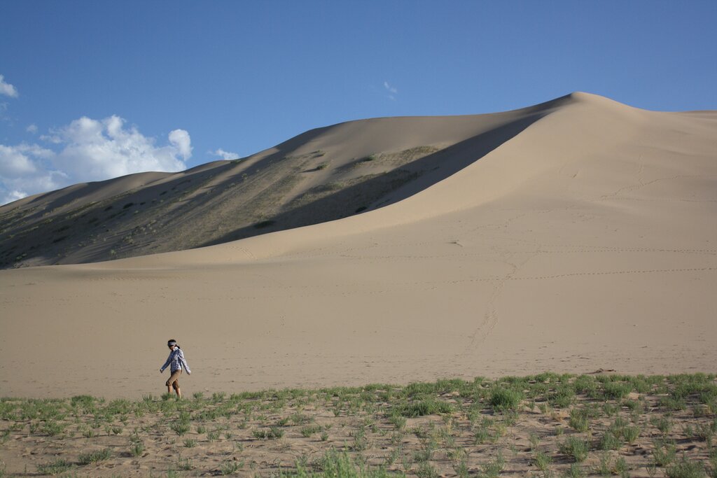 Watch them graze and gallop across the lush landscape before returning to the entrance to explore the small museum. Learn about the park’s ecosystem and its successful conservation efforts as you browse the interactive exhibits, informative displays, and engaging presentations. Jump back in the car to drive three to four hours to the Elsen Tasarkhai sand dunes, also known as the “Mini Gobi.” Settle into your lodge, where you can enjoy a delicious dinner and relax for the rest of the night.