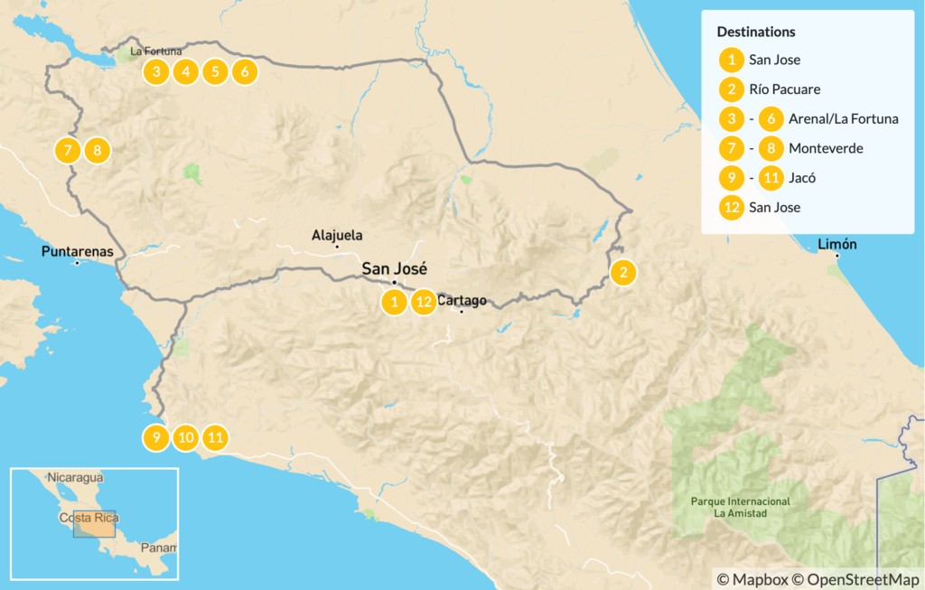 Map of Active Adventure in Costa Rica’s Jungles and Beaches – 13 days