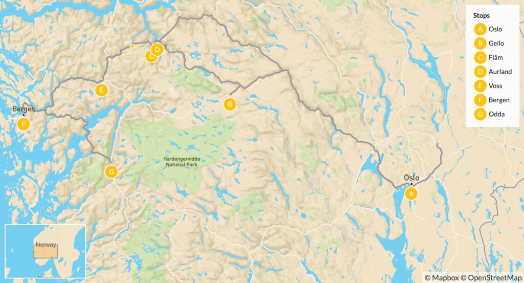 Get ready for more breathtaking scenery as you make your way back toward Oslo on a full-day journey by bus, boat, and train via Gudvangen and Flåm. You’ll start with a train ride toward Voss, stopping en route at Smalahovetunet to experience a lunch of traditional Norwegian fare in an ancient farmhouse. In Voss, you’ll switch to a bus that takes you back to the waterfall-lined valley around Gudvangen before hopping aboard a fjord cruise back to Flåm.