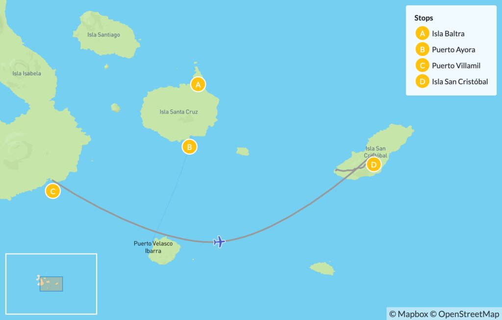 Map of Active Adventure in the Galápagos Islands – 11 Days