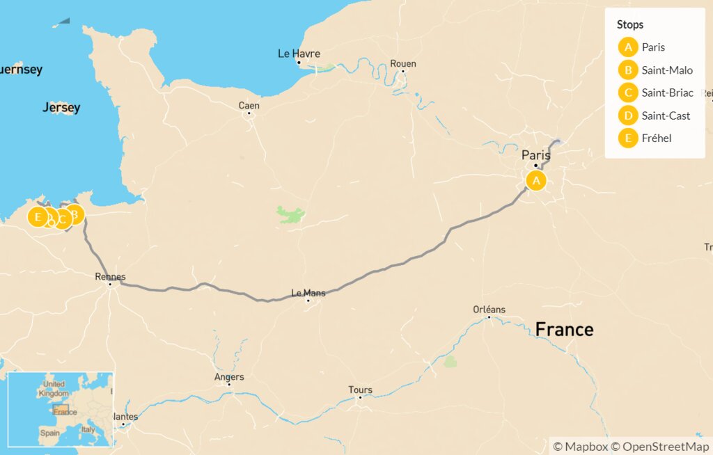 Map of Active Adventures in French Brittany: City Lights, Historic Sites & Coastal Hikes – 9 Days
