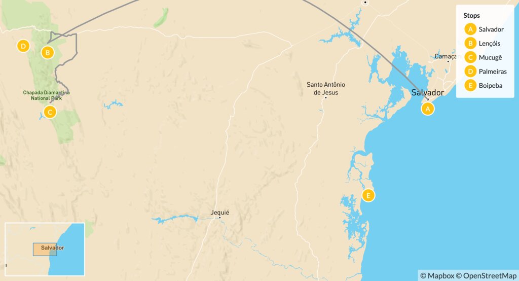 Map of Active Brazil: Trekking in Chapada Diamantina National Park – 11 Days