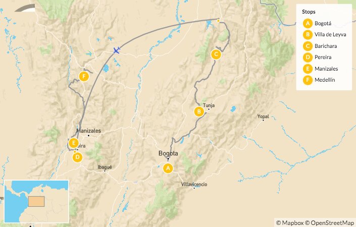 Map of Active Colombia: Cities, Jungles & Mountains – 15 Days