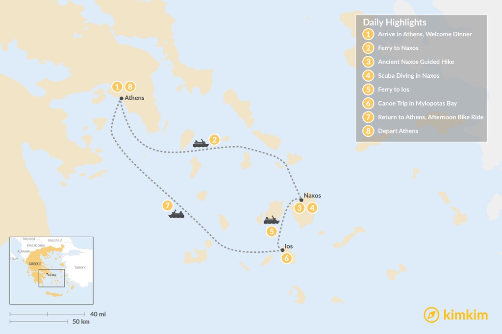 Map of Active Cyclades: Naxos & Ios – 8 Days