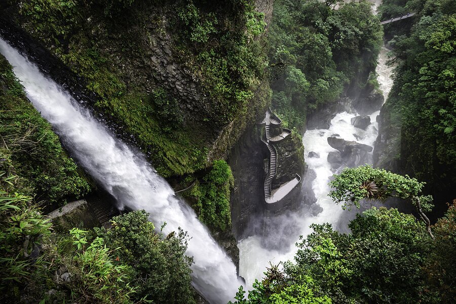 But that’s not all! Continue riding to Pailón del Diablo (also known as “The Devil’s Cauldron”), another plunging waterfall you can hike alongside on a stairway built into the canyon walls. Afterward, enjoy a snack at a restaurant near the river before transferring back to Baños by vehicle.