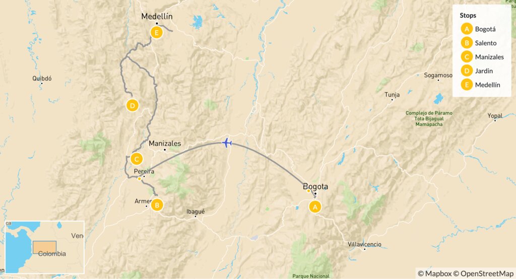 | Day 1 | Arrive in Bogotá | Bogotá |