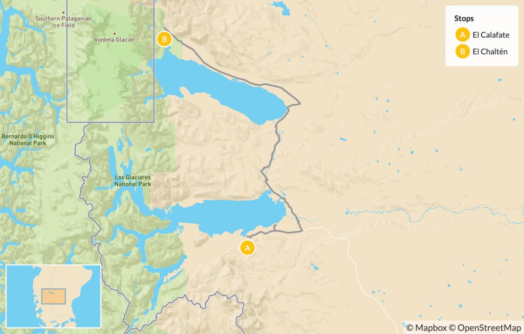 Map of Active Exploration of Patagonia’s Los Glaciares National Park – 6 Days