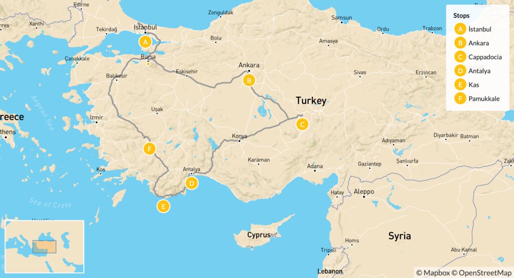 Map of Active Exploration of Turkey’s Cultural & Natural Marvels – 16 Days