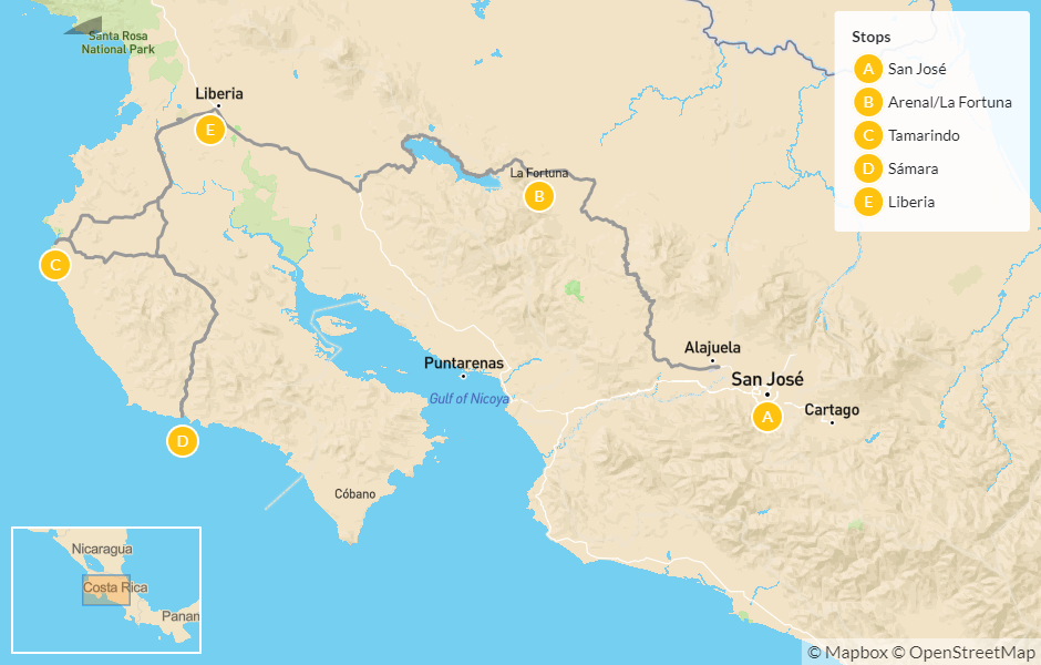 Map of Active Family Adventure in Costa Rica – 10 Days