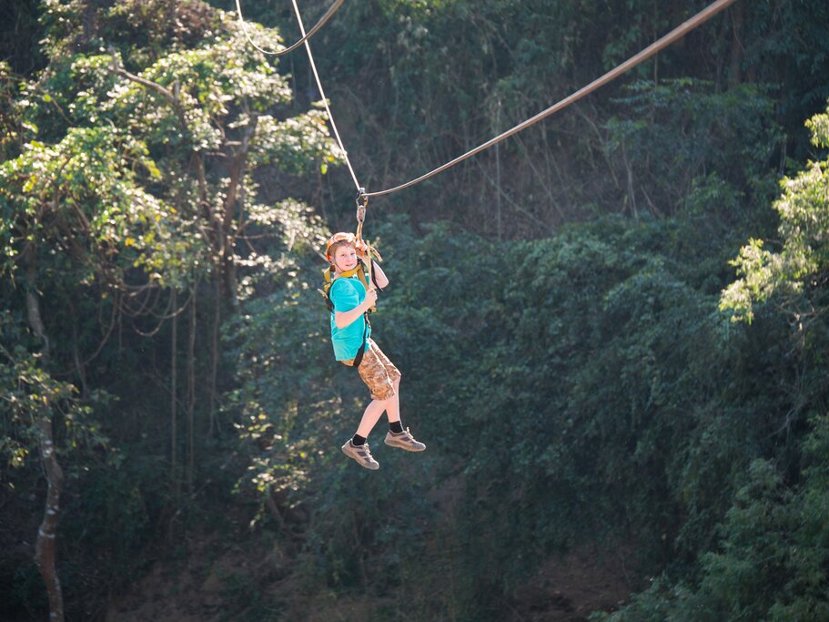 Stop in at the butterfly geodome, where the kids can see hundreds of colorful butterflies as they alight on surrounding flowers and foliage, and make sure the whole family keeps an eye out for curious monkeys, tropical birds, or coatimundis. And if you aren’t interested in flying through the trees or biking along a cable line, there are also several foot trails worth hiking. Families planning to zipline or cable bike will receive a safety briefing from a trained guide, and each rider wears a harness that is hooked to the above cable.